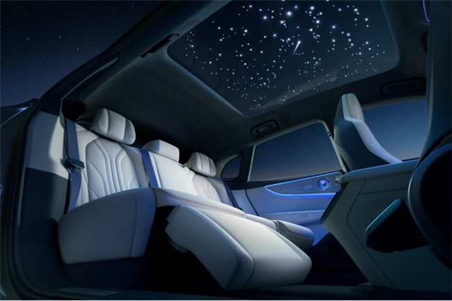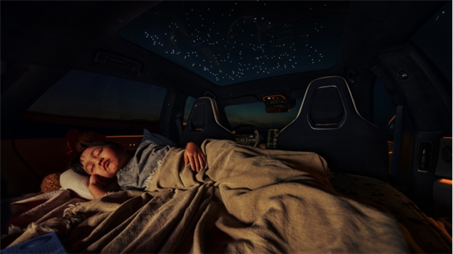 如果说白天的旅途属于风景,那夜晚就属于极氪001自己。全球首发的“浩瀚星空顶”,在LV分区调光天幕中嵌入了500颗独立星粒。白天它是一块通透的大天窗,夜晚一键点亮,整个车顶变成璀璨星河。想象一下:春夜的郊野,你和朋友或家人坐在车里,头顶星光闪烁,耳边是媲美音乐厅的音效——ZEEKR Sound Max海豚音剧院级音响,4680W峰值功率,29个扬声器,8个头枕音响,8个座椅振子,配合杜比全景声。这不是“听歌”,而是“沉浸”。无论是放一首民谣,还是播一段白噪音,整个座舱都在微微共振,仿佛置身于星空下的音乐会。这种体验比任何车载大屏都更让人难忘。